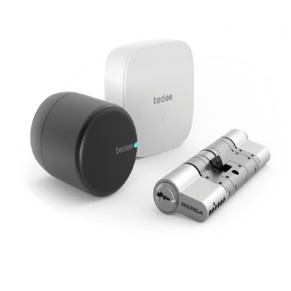 Kit Cerradura electrónica tedee PRO – Negra + Cilindro Modular + Bridge